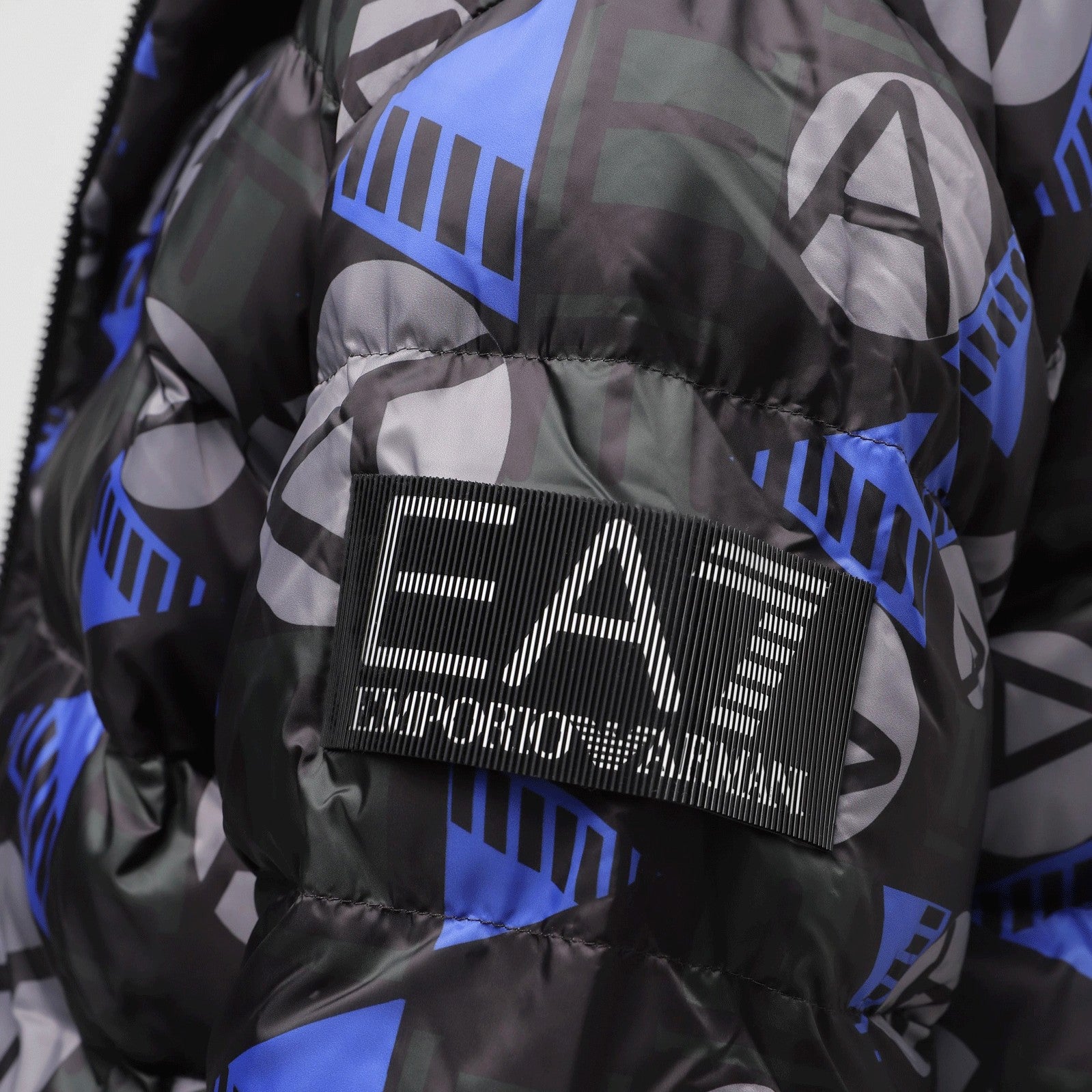 PIUMINO IMBOTTITO EMPORIO ARMANI EA7 – FANTASIA GEOMETRICA NERO E BLU