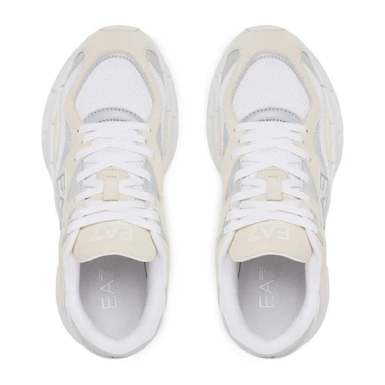 La tomaia è costruita con un mix di materiali tecnici traspiranti e inserti protettivi, garantendo una calzata leggera e strutturata al tempo stesso. La suola in gomma dal profilo scolpito è progettata per offrire un'eccellente trazione e un'ammortizzazione ottimale durante l'uso quotidiano. Entrambi i modelli sono impreziositi dall'iconico logo EA7 laterale, simbolo di un'eleganza sportiva senza compromessi, perfetta per l'uomo che cerca una calzatura versatile per gli outfit urban e il tempo libero.