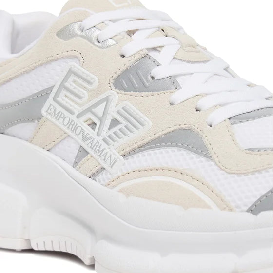 Le sneakers EA7 Emporio Armani (Codice X8X237 XK425) rappresentano l'evoluzione contemporanea della scarpa da running dedicata al lifestyle di lusso. Questo modello è disponibile in due sofisticate interpretazioni cromatiche che ne esaltano le linee dinamiche: la variante Grigia e Nera (Q738), caratterizzata da un contrasto grafico netto e intramontabile, e la versione Cobblestone/Silver, una tonalità neutra ricercata con dettagli argentati che conferiscono un look high-tech e futuristico.