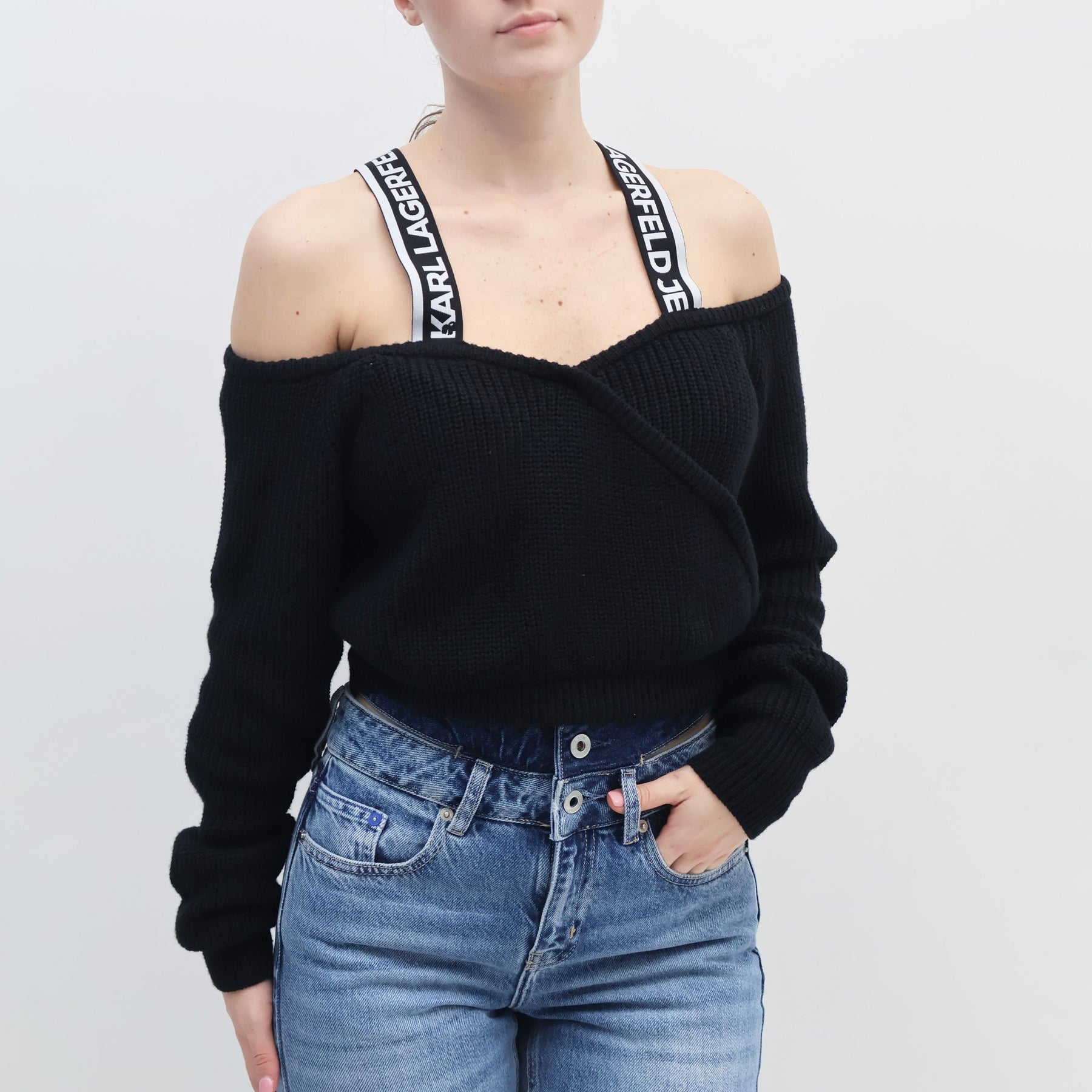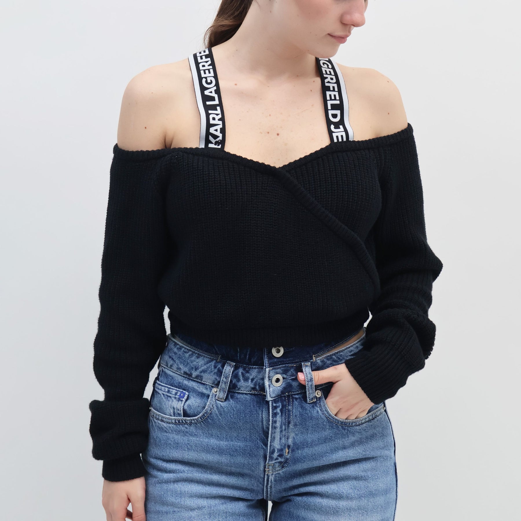 Realizzata in morbido tessuto felpato (cotone o misto cotone), la felpa è in un elegante colore nero monocromatico. Il modello può essere girocollo o con cappuccio (hoodie). L'elemento distintivo è il logo Karl Lagerfeld posizionato centralmente, spesso in bianco a contrasto (lettering, firma o profilo stilizzato di Karl). La felpa presenta polsini e orlo a costine, garantendo una vestibilità confortevole.