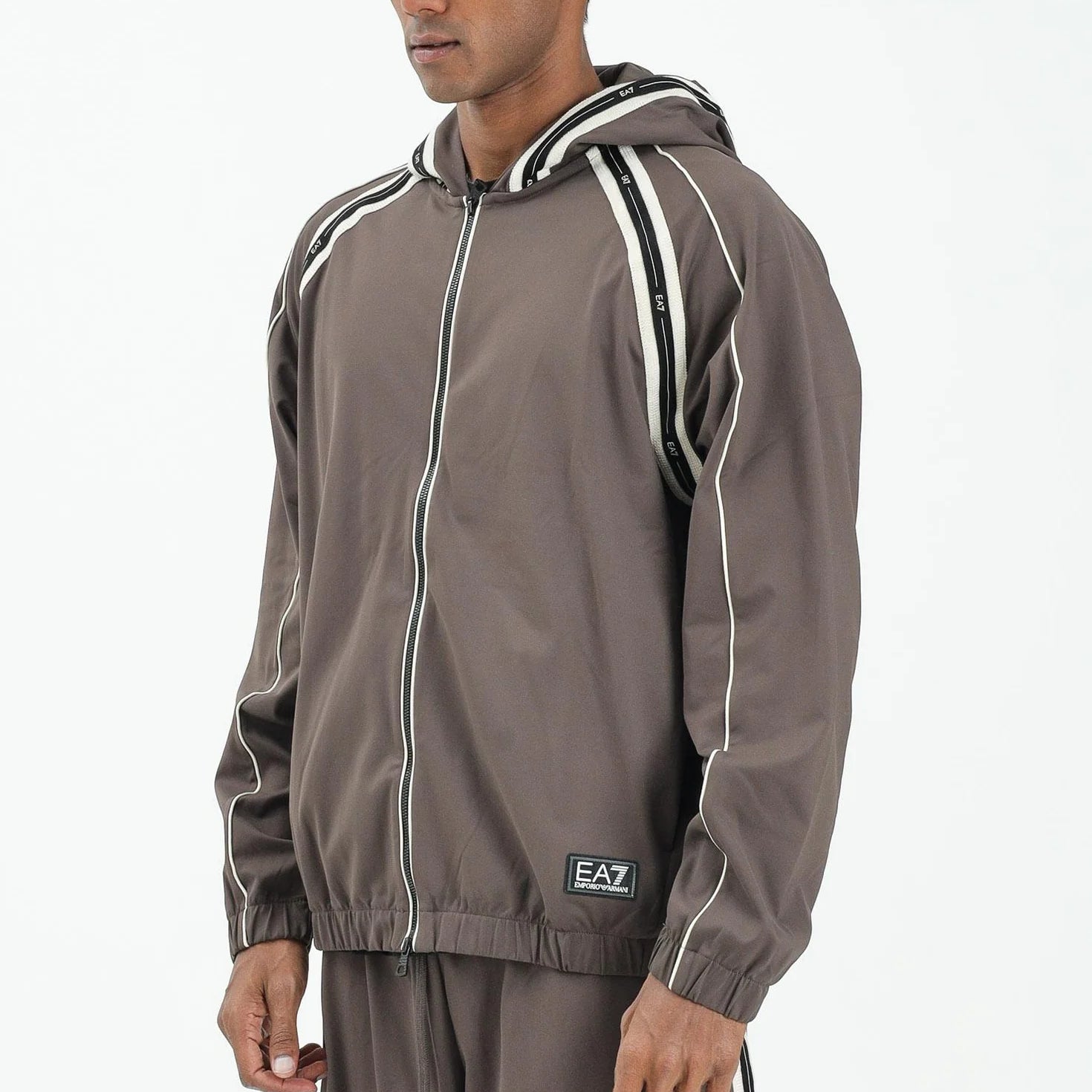La collezione Train Logo Series di EA7 Emporio Armani rappresenta la sintesi perfetta tra l'attitudine sportiva del brand e una ricerca cromatica sofisticata. Questa proposta esclusiva comprende due capi iconici: la Giacca a Vento color Cammello e la Felpa Full Zip Marrone con dettagli Panna. Entrambi i capi sono accomunati dall'inconfondibile "Logo Tape", il nastro logato che percorre le maniche e il cappuccio, definendo una silhouette dinamica e immediatamente riconoscibile.